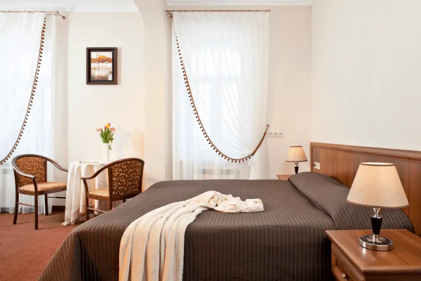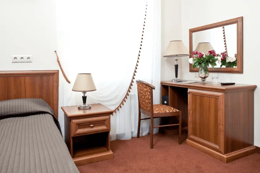 Стандартный двухместный номер с кроватью King Size или с двумя односпальными кроватями. Есть телевизор и мини-бар.