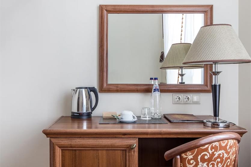 Во всех номерах этой категории есть зона, оборудованная всем необходимым для уединенного чаепития или ужина.
