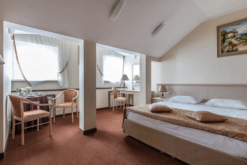 Номер для тех, кто ценит уют и комфорт. Двухместный номер площадью 21 м2 с кроватью King Size или двумя односпальными кроватями.